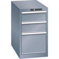 Dielenské zásuvkové skrine Lista, 3 alebo 5 zásuviek. Zámok na kľúč. Optimálne využitie vďaka plnému výsuvu a optimálnej výške čela zásuviek. Vynikajúca ochrana proti prachu, kvapalinám a mechanickému opotrebovaniu vďaka uzavretému rámu s povrchom odolným proti nárazom a oderu. Systém proti prevráteniu, ktorý zabraňuje pádu zásuvky, a individuálne zamykanie zásuviek. Ochrana proti korózii elektroforetickým imerzným lakovaním a striekaním. Optimalizované úložné priestory a organizácie vďaka deliacemu materiálu LISTA prispôsobenému každému použitiu a zásuvkám vybaveným drážkami a perforáciami. Profesionálne popisovanie s popisovacím softvérom LISTA Script a výklopnou úchytkou na vkladanie štítkov. Dokonale tichý pohyb vďaka sane bez priečnika. Deliaci materiál do zásuviek nie je súčasťou dodávky. Nutné dokúpiť zvlášť. Max. zaťaženie (kg) : 75 kg