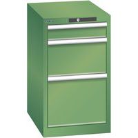 Dielenské zásuvkové skrine Lista, 3 alebo 5 zásuviek. Zámok na kľúč. Optimálne využitie vďaka plnému výsuvu a optimálnej výške čela zásuviek. Vynikajúca ochrana proti prachu, kvapalinám a mechanickému opotrebovaniu vďaka uzavretému rámu s povrchom odolným proti nárazom a oderu. Systém proti prevráteniu, ktorý zabraňuje pádu zásuvky, a individuálne zamykanie zásuviek. Ochrana proti korózii elektroforetickým imerzným lakovaním a striekaním. Optimalizované úložné priestory a organizácie vďaka deliacemu materiálu LISTA prispôsobenému každému použitiu a zásuvkám vybaveným drážkami a perforáciami. Profesionálne popisovanie s popisovacím softvérom LISTA Script a výklopnou úchytkou na vkladanie štítkov. Dokonale tichý pohyb vďaka sane bez priečnika. Deliaci materiál do zásuviek nie je súčasťou dodávky. Nutné dokúpiť zvlášť. Max. zaťaženie (kg) : 75 kg