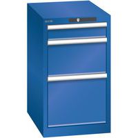Dielenské zásuvkové skrine Lista, 3 alebo 5 zásuviek. Zámok na kľúč. Optimálne využitie vďaka plnému výsuvu a optimálnej výške čela zásuviek. Vynikajúca ochrana proti prachu, kvapalinám a mechanickému opotrebovaniu vďaka uzavretému rámu s povrchom odolným proti nárazom a oderu. Systém proti prevráteniu, ktorý zabraňuje pádu zásuvky, a individuálne zamykanie zásuviek. Ochrana proti korózii elektroforetickým imerzným lakovaním a striekaním. Optimalizované úložné priestory a organizácie vďaka deliacemu materiálu LISTA prispôsobenému každému použitiu a zásuvkám vybaveným drážkami a perforáciami. Profesionálne popisovanie s popisovacím softvérom LISTA Script a výklopnou úchytkou na vkladanie štítkov. Dokonale tichý pohyb vďaka sane bez priečnika. Deliaci materiál do zásuviek nie je súčasťou dodávky. Nutné dokúpiť zvlášť. Max. zaťaženie (kg) : 75 kg
