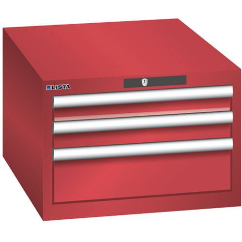 Dielenská zásuvková skriňa LISTA, 3 zásuvky = 2x 75 + 1x 150mm, 564x725x383mm, červená