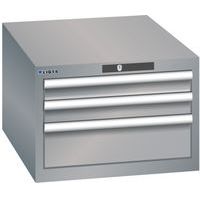 Dielenská zásuvková skriňa LISTA, 3 zásuvky = 2x 75 + 1x 150mm, 564x725x383mm, šedá/strieborná
