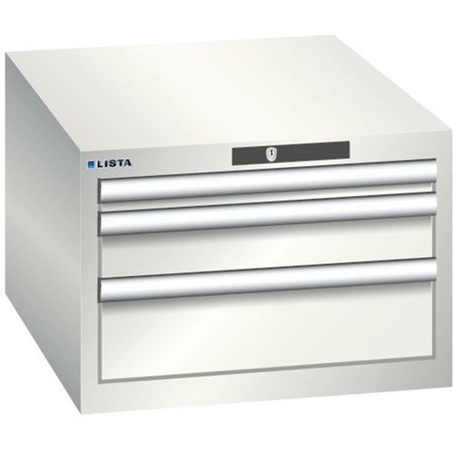 Dielenská zásuvková skriňa LISTA, 3 zásuvky = 1x 50 + 1x 100 + 1x 150mm, 564x725x383mm, svetlo šedá