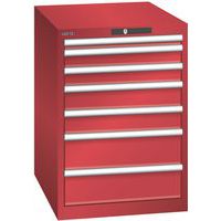 Dielenská zásuvková skriňa LISTA, 7 zásuviek = 1 x 50 / 2 x 75 / 2 x 100 / 2 x 150, 564x725x800 mm, červená