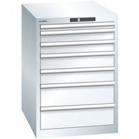 Dielenská zásuvková skriňa LISTA, 7 zásuviek = 1 x 50 / 2 x 75 / 2 x 100 / 2 x 150, 564x725x800 mm, biela