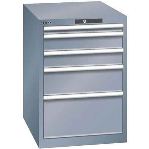 Dielenská zásuvková skriňa LISTA, 5 zásuviek = 1x 50 + 2x 100 + 1x 200 + 1x 300mm, 564x725x850mm, tmavo šedá