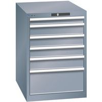 Dielenská zásuvková skriňa LISTA, 6 zásuviek = 1x 75 + 3x 100 + 1x 150 + 1x 250mm, 564x725x850mm, tmavo šedá