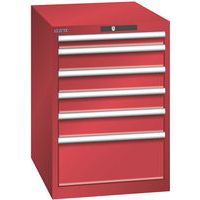 Dielenská zásuvková skriňa LISTA, 6 zásuviek = 1x 75 + 3x 100 + 1x 150 + 1x 250mm, 564x725x850mm, červená
