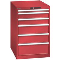 Dielenská zásuvková skriňa LISTA, 6 zásuviek = 1x 50 + 2x 100 + 2x 150 + 1x 200mm, 564x725x850mm, červená