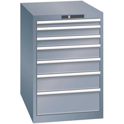 Dielenská zásuvková skriňa LISTA, 7 zásuviek = 1x 50 + 2x 75 + 2x 100 + 1x 150 + 1x 200mm, 564x725x850mm
