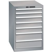 Dielenská zásuvková skriňa LISTA, 7 zásuviek = 2x 75 + 3x 100 + 2x 150mm, 564x725x850mm, šedá/strieborná