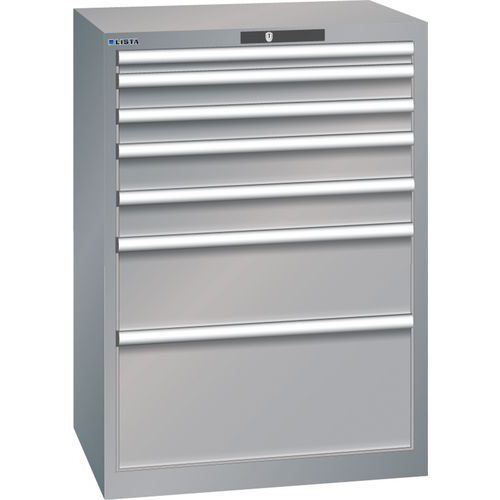 Dielenská zásuvková skriňa LISTA, 7 zásuviek = 1x50 + 2x75 + 2x100 + 1x200 + 1x300mm, 717x572x1000mm