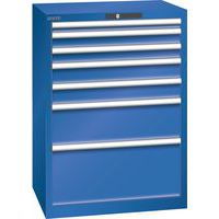 Dielenská zásuvková skriňa LISTA, 7 zásuviek = 1x50 + 2x75 + 2x100 + 1x200 + 1x300mm, 717x572x1000mm
