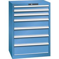 Dielenská zásuvková skriňa LISTA, 7 zásuviek = 2x75 + 1x100 + 3x150 + 1x200mm, 717x572x1000mm, modrá