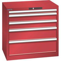 Dielenská zásuvková skriňa LISTA, 5 zásuviek = 1x50 + 2x100 + 1x150 + 1x200mm, 717x572x700mm, červená