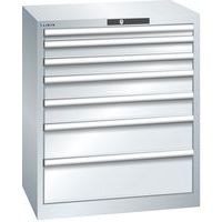 Dielenská zásuvková skriňa LISTA, 7 zásuviek = 1x50 + 2x75 + 2x100 + 1x150 +1x200mm, 717x572x850mm, sivá