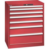 Dielenská zásuvková skriňa LISTA, 7 zásuviek = 1x50 + 2x75 + 2x100 + 1x150 +1x200mm, 717x572x850mm, červená