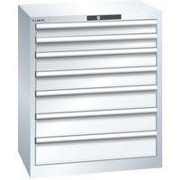 Dielenská zásuvková skriňa LISTA, 7 zásuviek = 2x75 + 2x100 + 2x125 + 1x150mm, 717x572x850mm, biela