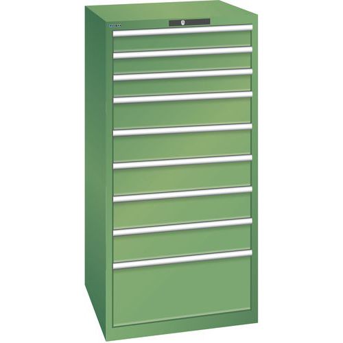 Dielenská zásuvková skriňa LISTA, 9 zásuviek = 3 x 100 / 5 x 150 / 1 x 300mm, 717x725x1450mm, nosnosť 75kg