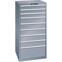 Dielenská zásuvková skriňa LISTA, 9 zásuviek = 3 x 100 / 5 x 150 / 1 x 300mm, 717x725x1450mm, nosnosť 75kg