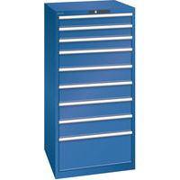 Dielenská zásuvková skriňa LISTA, 9 zásuviek = 3 x 100 / 5 x 150 / 1 x 300mm, 717x725x1450mm, nosnosť 75kg