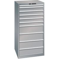Dielenská zásuvková skriňa LISTA, 717x725x1450mm, 10 zásuviek, nosnosť 200kg, šedá/strieborná