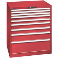 Dielenská zásuvková skriňa LISTA, 870x725x1000mm, 9 zásuviek, nosnosť zásuvky 75kg, červená