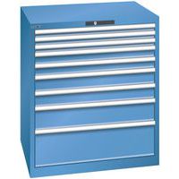 Dielenská zásuvková skriňa LISTA, 870x725x1000mm, 9 zásuviek, nosnosť zásuvky 200kg, modrá