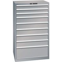 Dielenské zásuvkové skrine LISTA, 9 zásuviek = 3x100mm +5x150 +1x300mm, nosnosť zásuvky 200kg, 870x725x1450mm