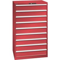 Dielenské zásuvkové skrine LISTA, 9 zásuviek = 9x150mm, nosnosť zásuvky 200kg, 870x725x1450mm, červená