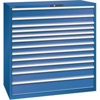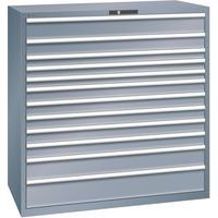 Dielenské zásuvkové skrine Lista, 12 zásuviek. Nosnosť 200kg. Optimálne využitie vďaka plnému výsuvu a optimálnej výške čela zásuviek. Vynikajúca ochrana proti prachu, kvapalinám a mechanickému opotrebovaniu vďaka uzavretému rámu s povrchom odolným proti nárazom a oderu. Bezpečná bezpečnosť: bezpečnostné zariadenie proti pádu, ktoré zabraňuje pádu zásuvky, a individuálne zamykanie zásuviek (systém proti prevráteniu). Ochrana proti korózii elektroforetickým imerzným lakovaním a striekaním. Optimalizované úložné priestory a organizácie vďaka deliacemu materiálu LISTA prispôsobenému každému použitiu a zásuvkám vybaveným drážkami a perforáciami. Profesionálne popisovanie s popisovacím softvérom LISTA Script a výklopnou úchytkou na vkladanie štítkov. Dokonale tichý pohyb vďaka sane bez priečnika. Max. zaťaženie (kg) : 200