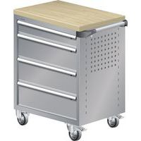 Dielenský zásuvkový vozík LISTA, pracovná doska z multiplexnej dyhy, 4 zásuvky, šedá/strieborná