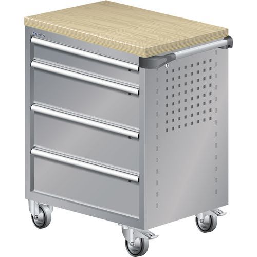 Dielenské zásuvkové vozíky LISTA, pracovná doska z multiplexnej dyhy, 4 zásuvky