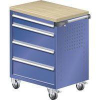 Dielenský zásuvkový vozík LISTA, pracovná doska z multiplexnej dyhy, 4 zásuvky, tmavo modrá