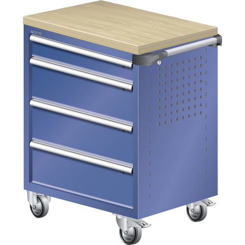- Dielenské zásuvkové vozíky LISTA, pracovná doska z multiplexnej dyhy, 4 zásuvky