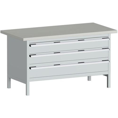 Dielenský stôl Bott Cubio Storage, 84 x 150 x 75 cm, 3 zásuvky, linoleum, šedá-šedá Dielenský stôl Bott Cubio Storage, 84 x 150 x 75 cm, 3 zásuvky, linoleum, šedá-šedá