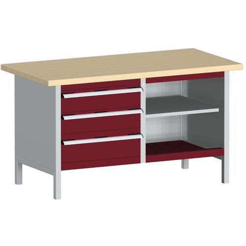 Dielenský stôl Bott Cubio Storage, 84 x 150 x 75 cm, 3 zásuvky, otvorený priestor s policou, multiplex Dielenský stôl Bott Cubio Storage, 84 x 150 x 75 cm, 3 zásuvky, otvorený priestor s policou, multiplex