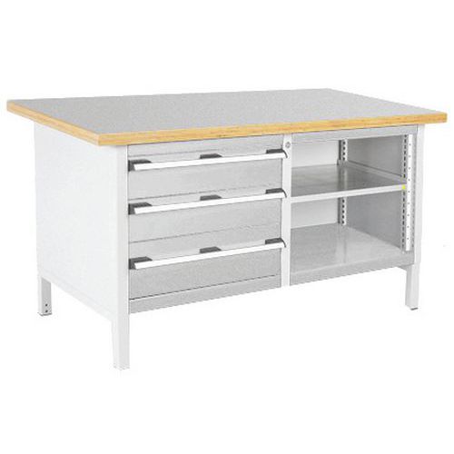 Dielenský stôl Bott Cubio Storage, 84 x 150 x 75 cm, 3 zásuvky, otvorený priestor s policou, linoleum Dielenský stôl Bott Cubio Storage, 84 x 150 x 75 cm, 3 zásuvky, otvorený priestor s policou, linoleum