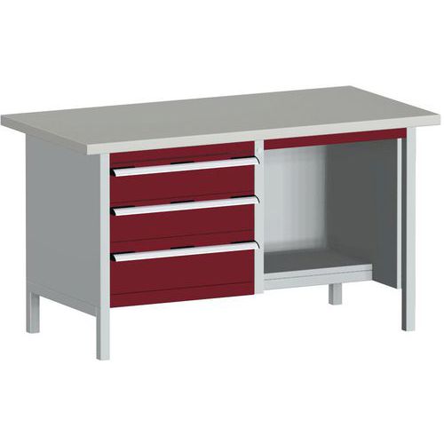 Dielenský stôl Bott Cubio Storage, 84 x 150 x 75 cm, 3 zásuvky, polica, linoleum, šedá-červená Dielenský stôl Bott Cubio Storage, 84 x 150 x 75 cm, 3 zásuvky, polica, linoleum, šedá-červená