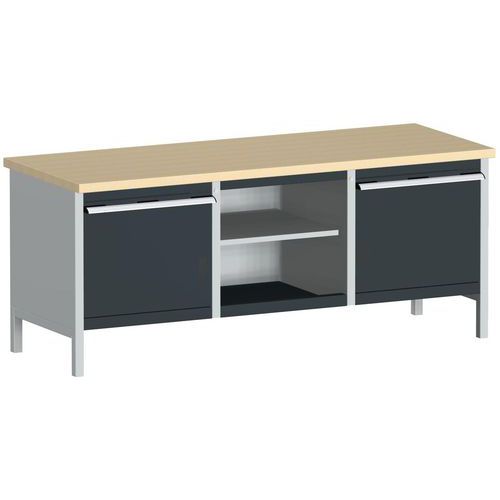 Dielenský stôl Bott Cubio Storage, 84 x 200 x 75 cm, 2 skrinky, 2 zásuvky, otvorený priestor s policou