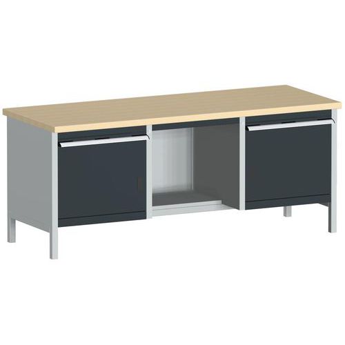 Dielenský stôl Bott Cubio Storage, 84 x 200 x 75 cm, 2 skrinky, 2 zásuvky, police, multiplex, šedá-antracit Dielenský stôl Bott Cubio Storage, 84 x 200 x 75 cm, 2 skrinky, 2 zásuvky, police, multiplex, šedá-antracit