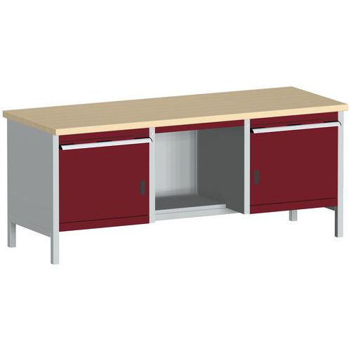 Dielenský stôl Bott Cubio Storage, 84 x 200 x 75 cm, 2 skrinky, 2 zásuvky, police, multiplex, šedá-červená Dielenský stôl Bott Cubio Storage, 84 x 200 x 75 cm, 2 skrinky, 2 zásuvky, police, multiplex, šedá-červená