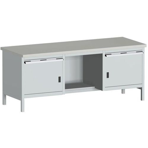 Dielenský stôl Bott Cubio Storage, 84 x 200 x 75 cm, 2 skrinky, 2 zásuvky, police, linoleum, šedá-sivá Dielenský stôl Bott Cubio Storage, 84 x 200 x 75 cm, 2 skrinky, 2 zásuvky, police, linoleum, šedá-sivá