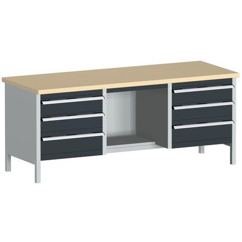Dielenský stôl Bott Cubio Storage, 84 x 200 x 75 cm, 6 zásuviek, police, multiplex, šedá-antracit Dielenský stôl Bott Cubio Storage, 84 x 200 x 75 cm, 6 zásuviek, police, multiplex, šedá-antracit