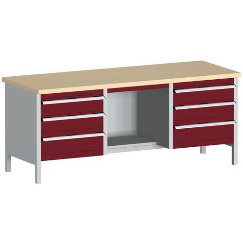 Dielenský stôl Bott Cubio Storage, 84 x 200 x 75 cm, 6 zásuviek, polica, multiplex, šedá-červená Dielenský stôl Bott Cubio Storage, 84 x 200 x 75 cm, 6 zásuviek, polica, multiplex, šedá-červená