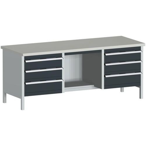 Dielenský stôl Bott Cubio Storage, 84 x 200 x 75 cm, 6 zásuviek, polica, linoleum, šedá-antracit Dielenský stôl Bott Cubio Storage, 84 x 200 x 75 cm, 6 zásuviek, polica, linoleum, šedá-antracit