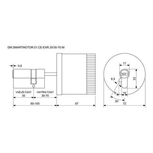 Digitálny motor ovládajúci cylindrickú vložku z vnútornej strany dverí, 35/30-70 mm, čierny