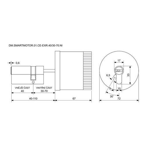 Digitálny motor ovládajúci cylindrickú vložku z vnútornej strany dverí, 40/30-70 mm, čierny