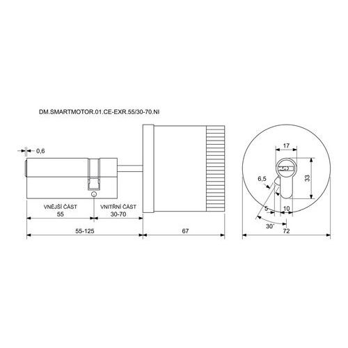 Digitálny motor ovládajúci cylindrickú vložku z vnútornej strany dverí, 55/30-70 mm, čierny