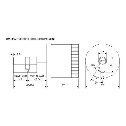 Digitálny motor ovládajúci cylindrickú vložku z vnútornej strany dverí, 30/30-70 mm, nikel