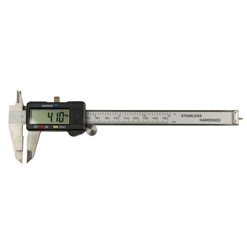 - Digitálne posuvné meradlo s číslicovým displejom, fixačnou skrutkou a praktickými funkciami.K dispozícii v troch dĺžkových vyhotoveniach.